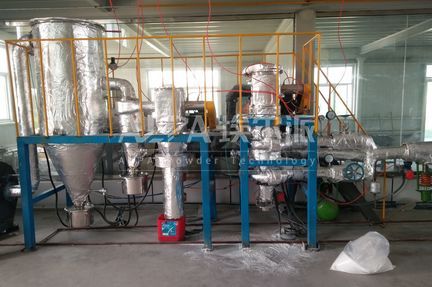惰性氣體保護(hù)氣流磨隔絕氧氣。設(shè)備投料啟動前,先用氮氣置換密閉循環(huán)系統(tǒng)中的空氣,同時密閉加料、卸料系統(tǒng)可將加、卸料過程中帶入的少量空氣用氮氣置換出來,保持系統(tǒng)內(nèi)氧含量基