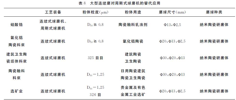 基于節(jié)能和節(jié)省人工方面而進(jìn)行的大型連續(xù)磨對(duì)周期式球磨機(jī)的替代應(yīng)用,大型連續(xù)磨對(duì)周期式球磨機(jī)的替代應(yīng)用見表8。